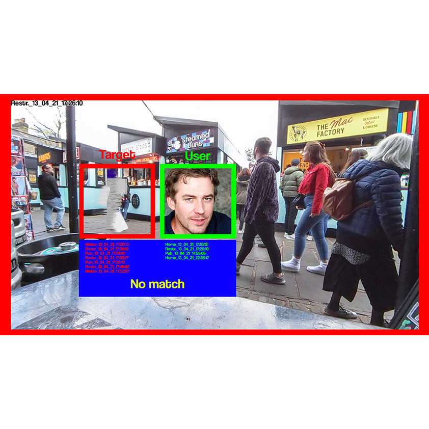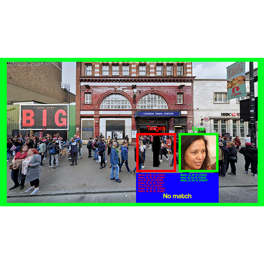 This artwork was made as a response to the growing surveillance state that is being fuelled by big data and AI algorithms that make spying and tracking of a person easy and quick.